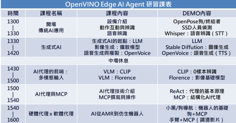OpenVINO 降低 AI 應用的門檻,讓人人可用,人人可懂 AI,課程結合最新MCP 的 AI 應用,讓「視覺、語言與機器人運動」無痛整合邁向 VLA 的 AI 新時代。