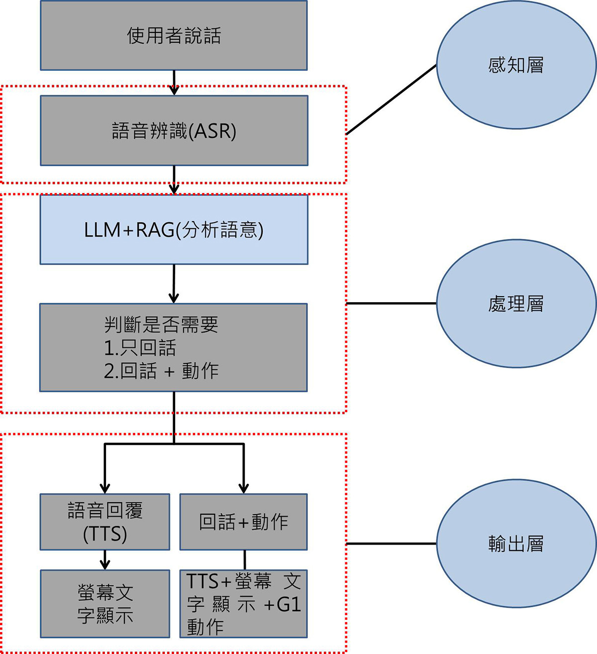 使用者說話後,機器人透過 ASR(Automatic Speech Recognition) 技術將語音轉換成文字,作為後續處理的基礎。