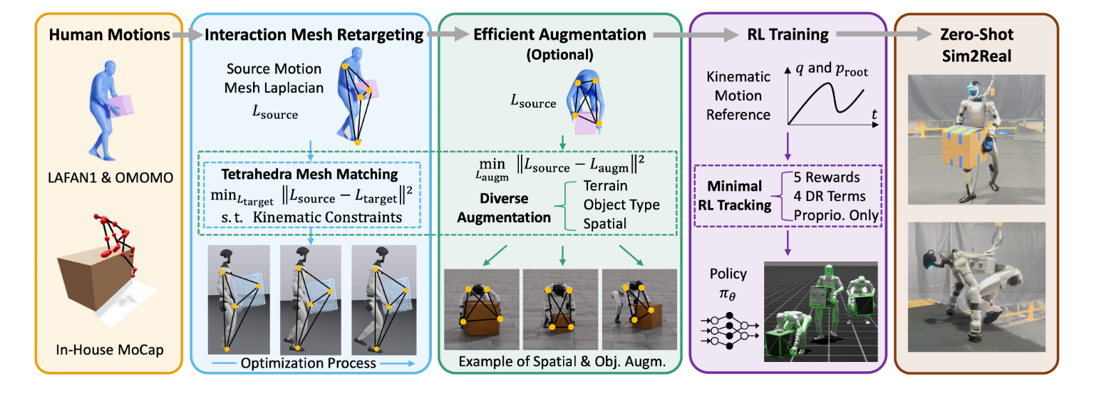 以往的人形機器人動作轉換技術,無法有效彌合人與機器人的「具身差距」,導致腳步打滑(foot-skating)、機身穿透(physical penetration),以及真實世界互動功能(如物體操作、地形接觸)缺失。