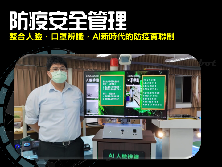 透過AI視覺辨識模組,精準辨識人臉、有無口罩,並將辨識到資料回傳建檔。