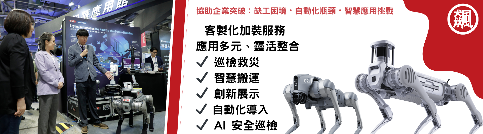 在2025 台北國際自動化工業大展上,Play Robot 飆機器人展示多款機器人與機器狗,展現其在智慧移動與協作應用上的最新成果。不僅鎖定工業自動化的需求,也將技術延伸至服務型與娛樂型市場,展現未來機器人跨場域應用的廣大潛力。