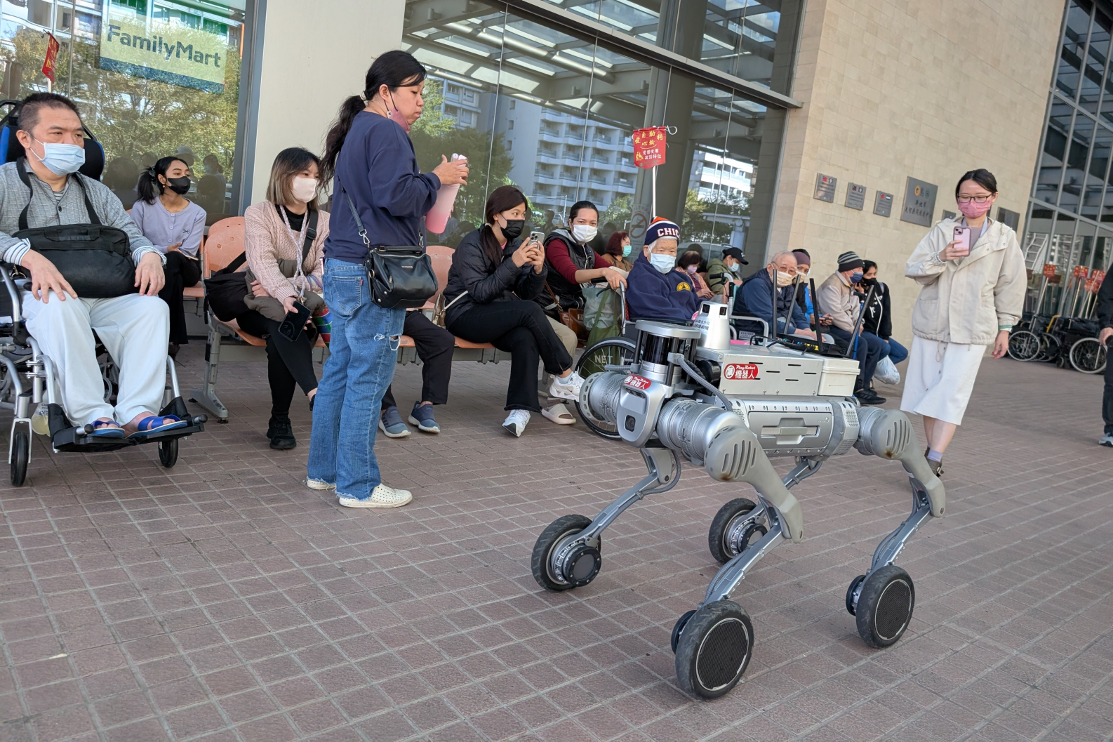 蕭美琴也主動與機器狗互動「握手」,笑稱:「它的穩定性很高,又比想像中更靈活!」