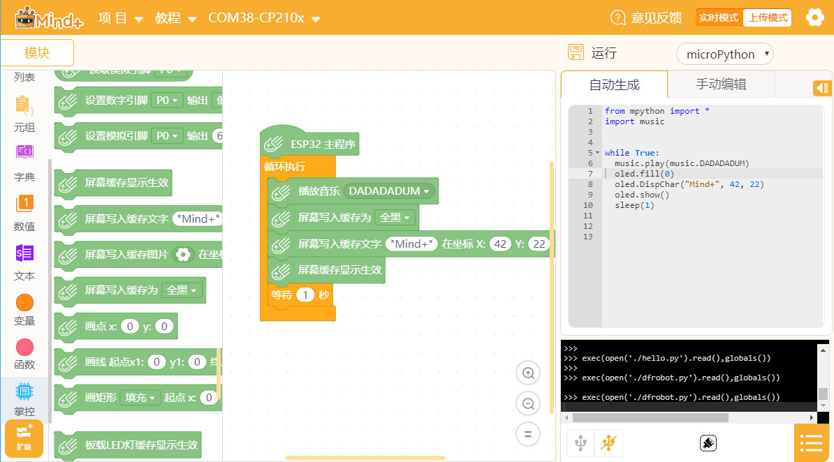 也可以使用Mind+的圖形化編程同時自動生成python代碼