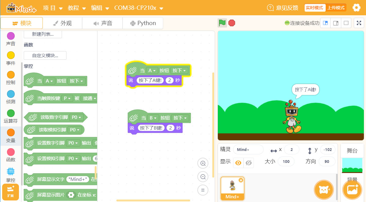 可以使用Mind+的Scratch的互動式程式編輯: