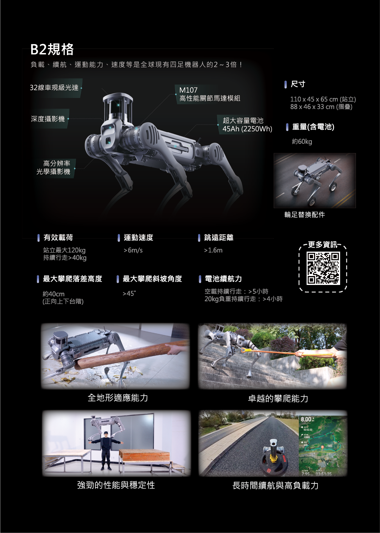 具備卓越的地形適應性,即使在濕滑或極端地形也能穩定前進