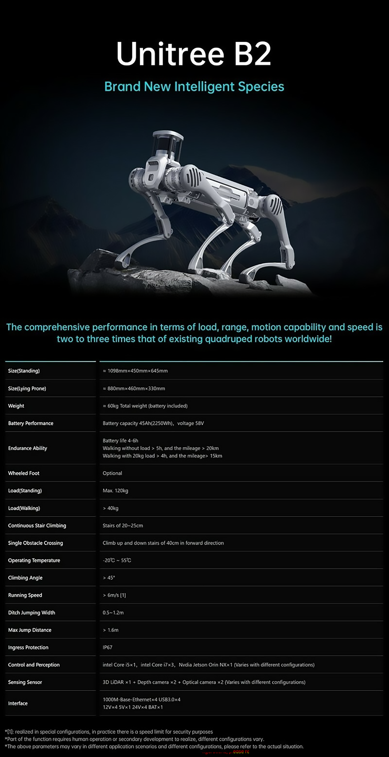 20kg負載持續行走大於4小時,里程超過15km;
