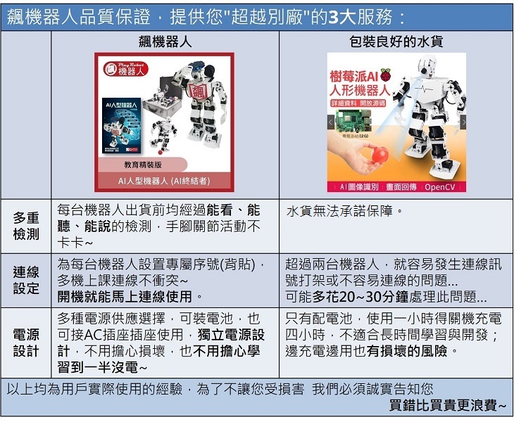 飆機器人提供您【三大服務】,讓您【拿到就能玩】、【拿到就能學】,更能【學以致用】~