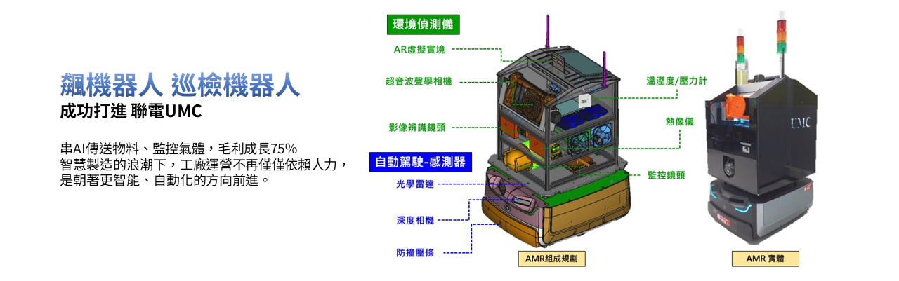 AMR巡檢機器人不僅能夠自主導航,更具備強大的感測能力,讓它成為工廠的「耳目」,即時掌握設備狀況。聯電在機器人上整合了三大關鍵技術: