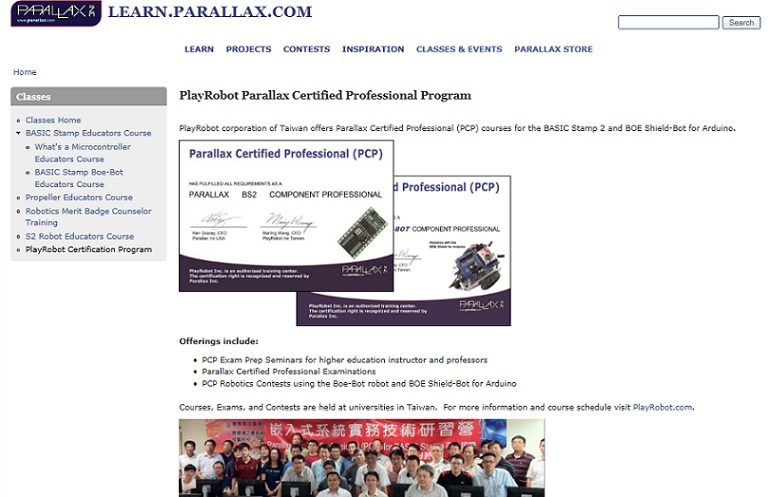 課程績效肯定評鑑方式 _ PCP(Parallax Certified Professional) 嵌入式國際證照指定機台。