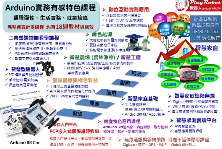 另外 搭配各式感測與通訊裝置,讓您的學習或課程更加完備與應用課程規劃與各式教學資源,歡迎來電或來信洽詢 或是參加我們北中南各場研習。