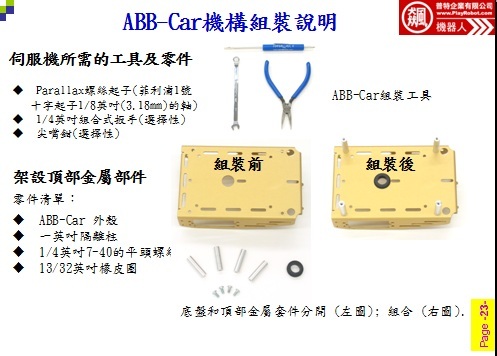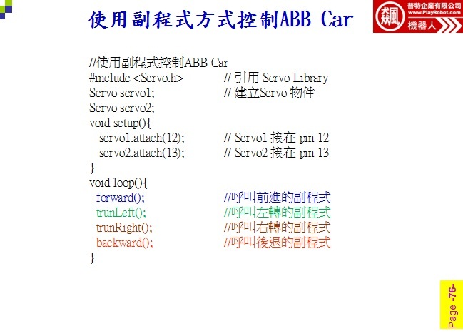 Arduino (ABB Car) 機器人實務應用18堂課 手冊目錄 |
