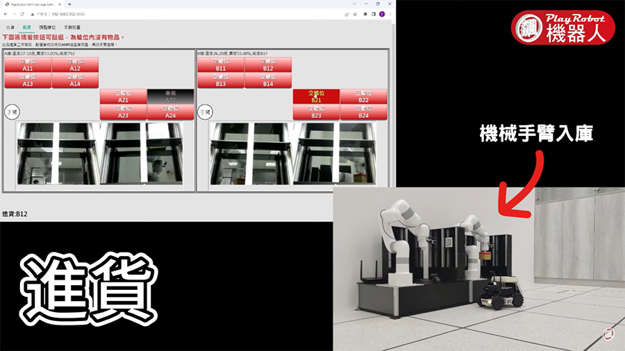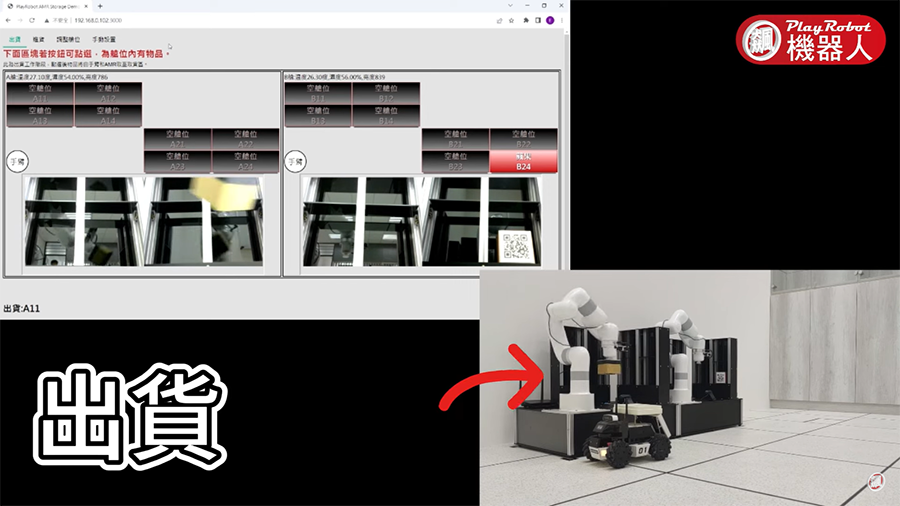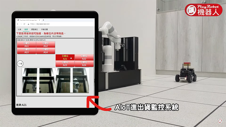 這是一套AIoT工業4.0智慧工廠開發場域方案,透過AI智能六軸協作型手臂和AMR倉儲車,實現迷你工廠自動倉儲。