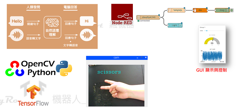 | 特色教學:python程式+Arduino應用、AI + IoT無所不控 學習歷程:IoT實務認證、AI + IoT專題、創客、競賽最佳利器 學習重點:從玩python開始,再到手機端控制,最後到AI時代語音及影像控制 |