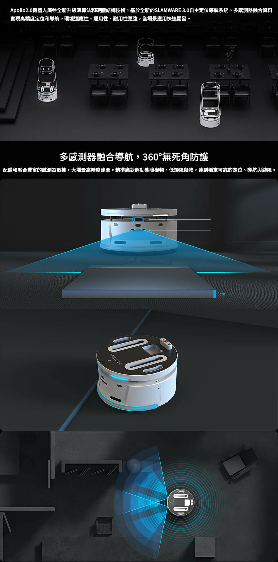Apollo2.0機器人底盤全新升級演算法和硬體結構技術,基於全新的SLAMWARE 3.0自主定位導航系統、