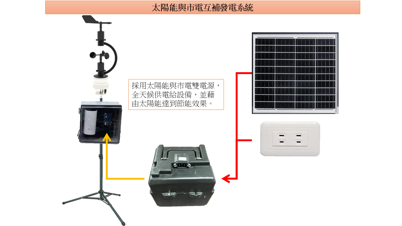 更搭配太陽能發電/蓄電系統,使氣象站在天氣良好的時候可以依靠綠能運作!