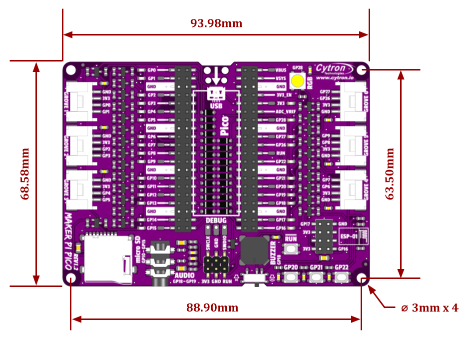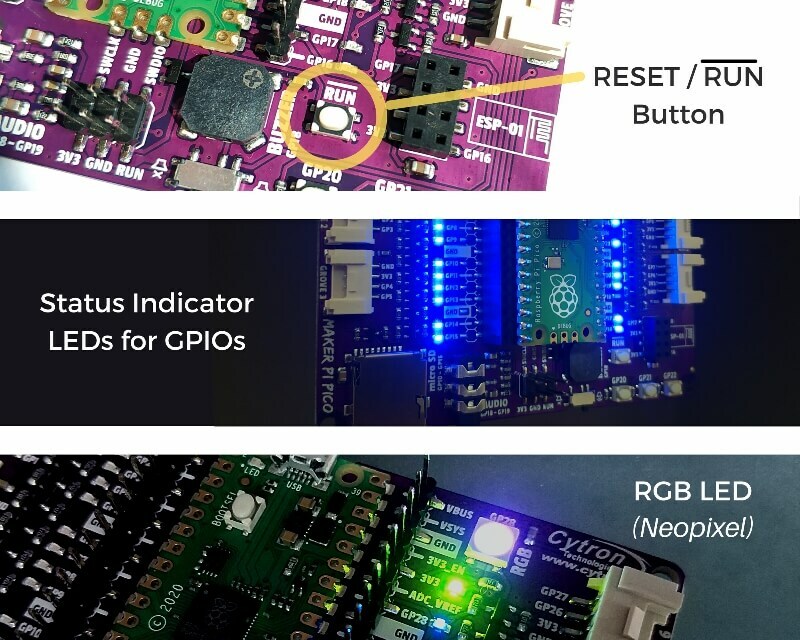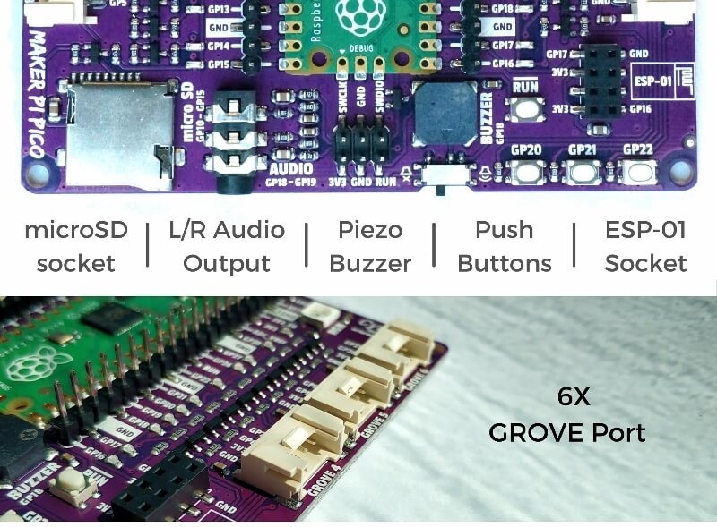 Maker Pi Pico can be programmed with CircuitPython, MicroPython & C/C++. Just connect to any computer (including Raspberry Pi SBC) via USB,