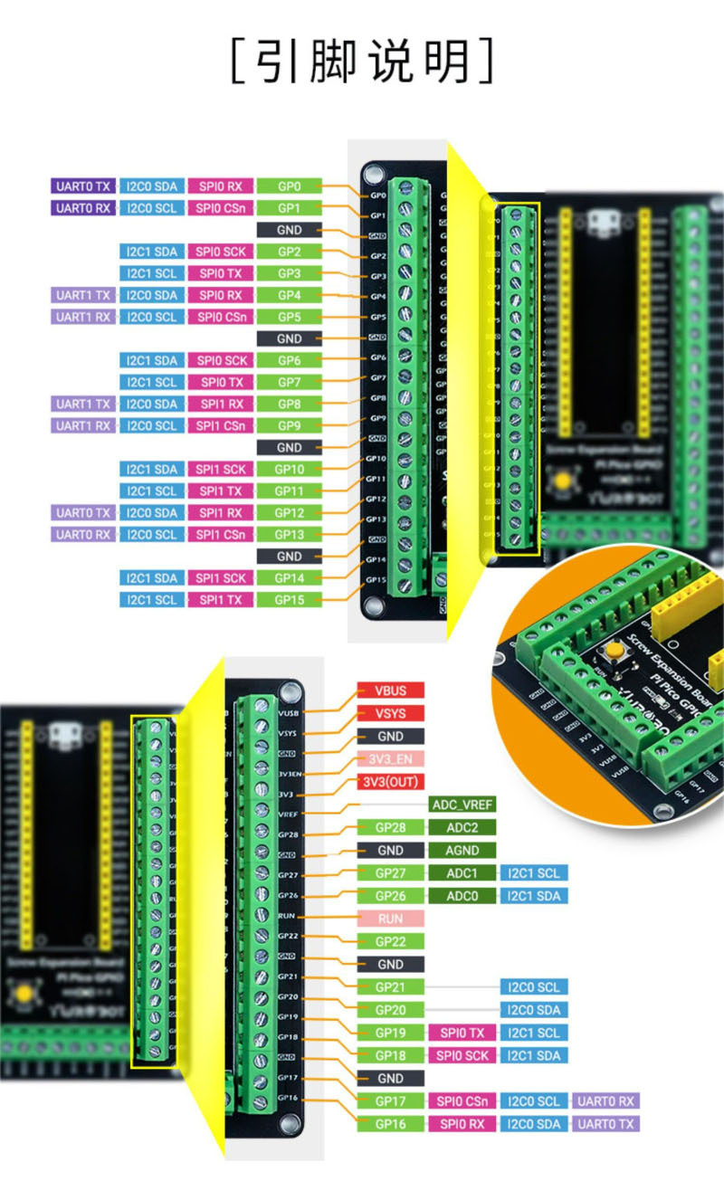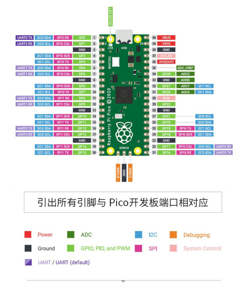 ● 與樹莓派 Pico 接口相容