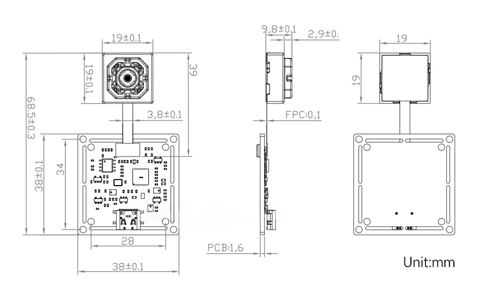 鏡頭尺寸:19.00 × 19.00 × 9.90 mm