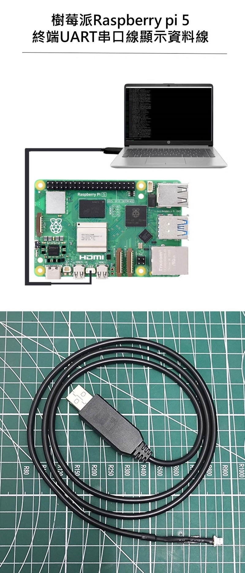 連接 Raspberry Pi 5 的 UART 接頭和電腦 USB