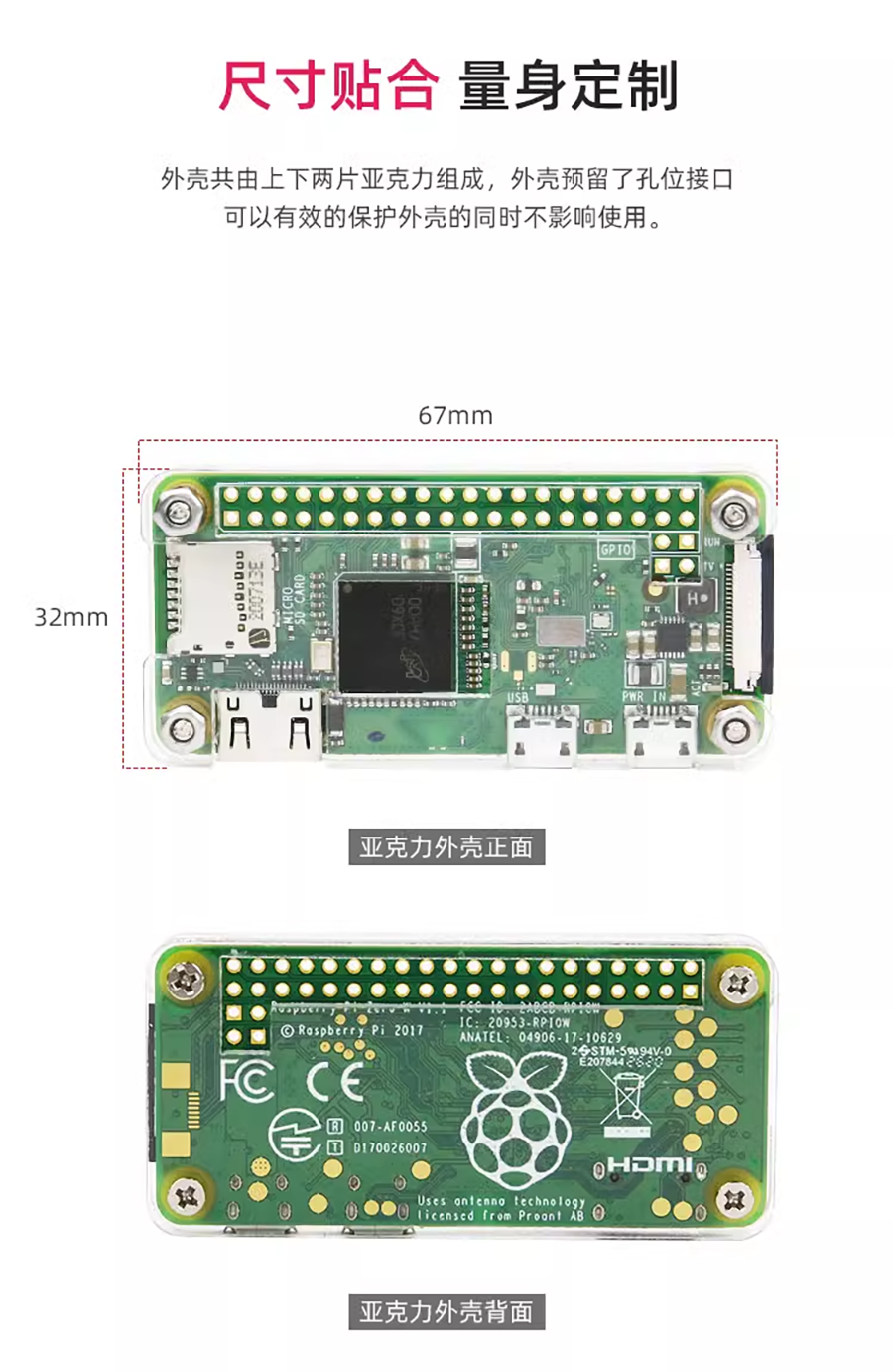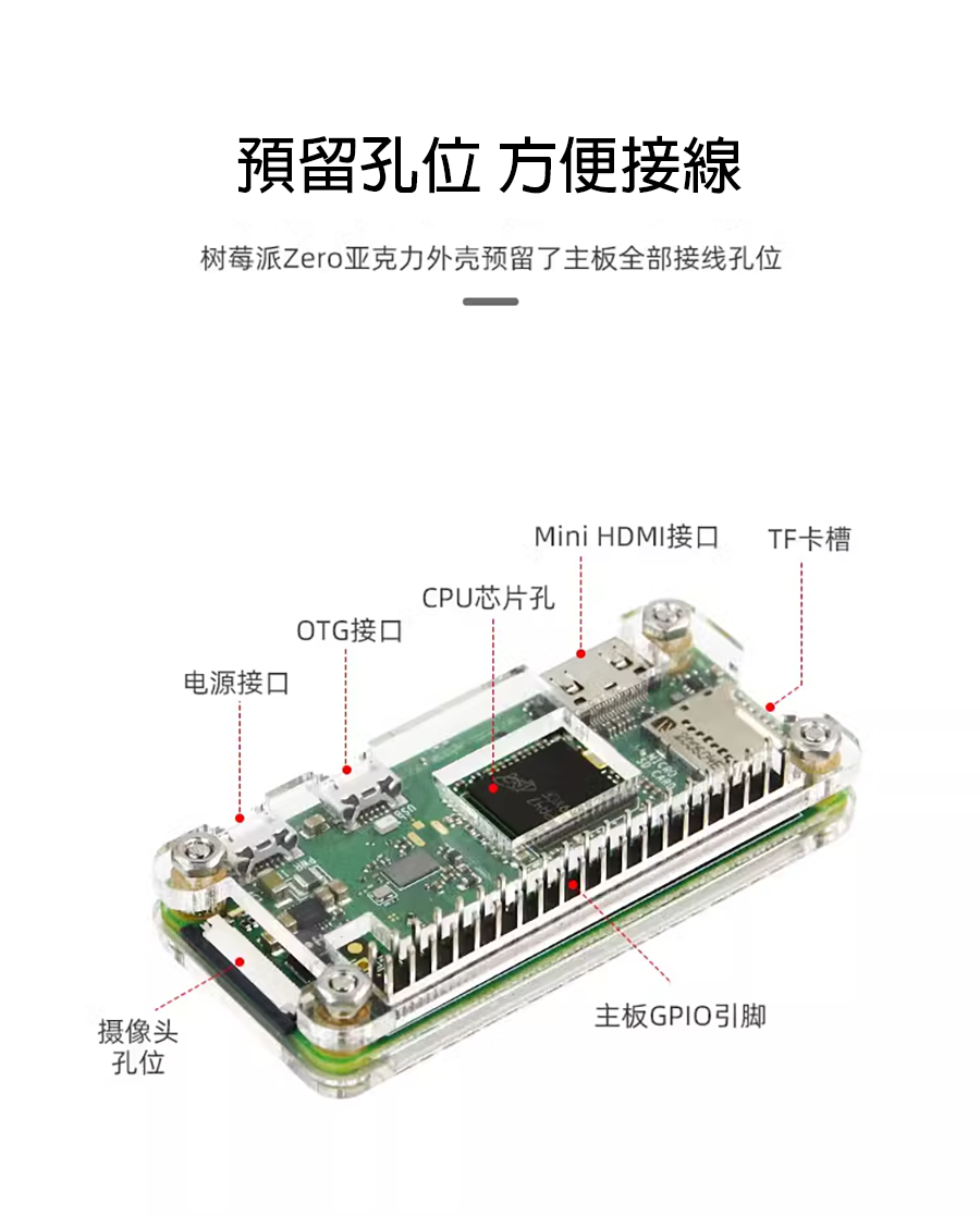 樹莓派Zero/Zero W/Zero WH/Zero 2W專用壓克力透明外殼(不包含主板)
