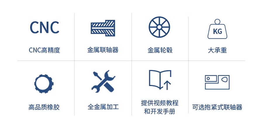 【Omni B127】全向輪直徑127毫米,安裝孔徑18毫米,採用高強度鋁合金材質,提供卓越的耐用性和穩定性。其360度全方向移動設計,使其能夠在各種方向上平滑移動,非常適合機器人和移動平台等需要高靈活性的應用場景。