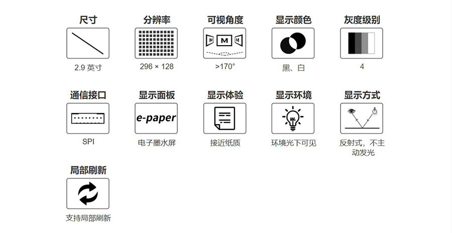 【產品特色】功耗低、視角寬、斷電仍可清楚顯示,可接上Raspberry/Jetson Nano/Arduino等主機板