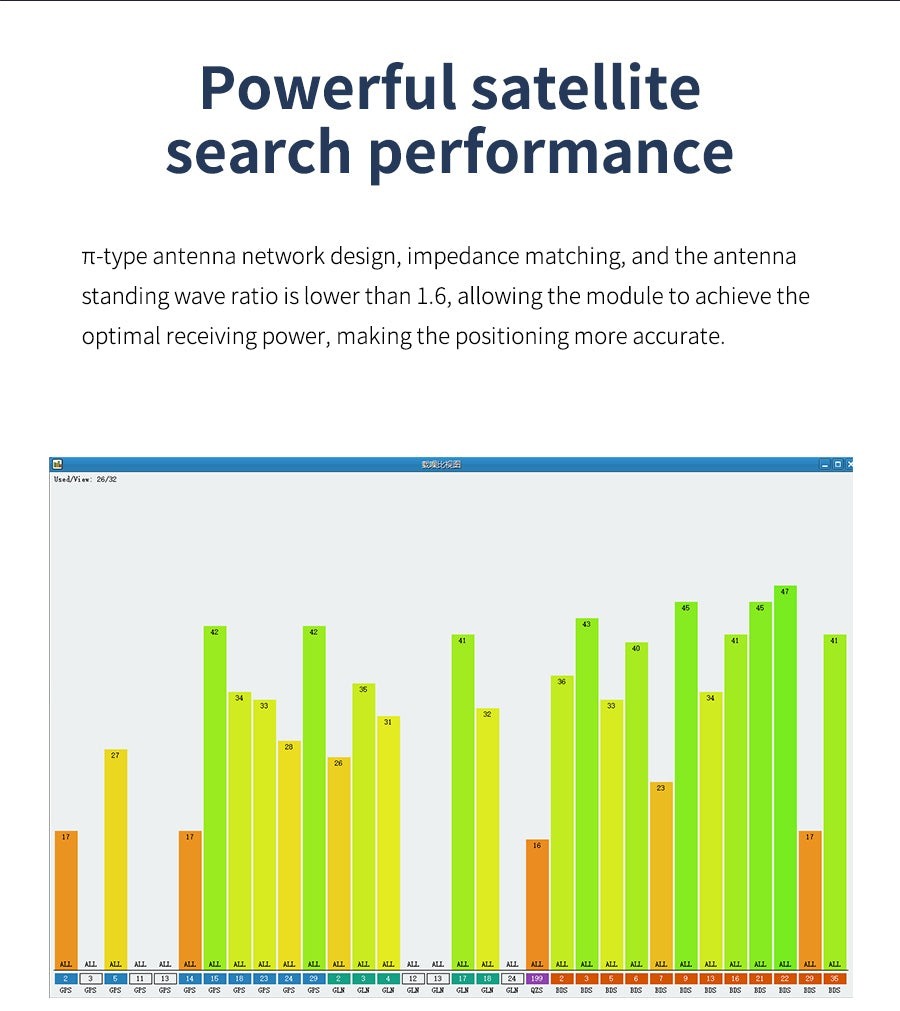 1. 支援四大衛星系統(BDS、GPS、GLONASS、QZSS)