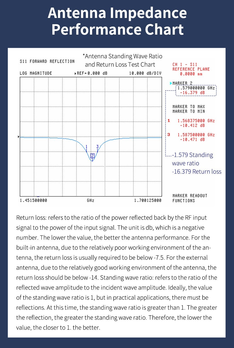 2. π型天線電路,阻抗匹配為50Ω,天線駐波比低於1.6