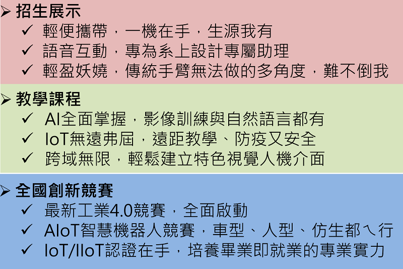 除了方便教學、專題、競賽、展示外,還真正達到「走出校園,邁向業界」的成效。