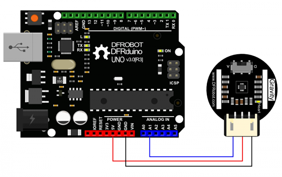 這款心率監測器感測器是一種基於PPG技術開發的脈搏感測器。這是一種簡單且低成本的光學技術,可用於檢測組織微血管床中的血液容積變化。根據這一理論,檢測心臟週期的脈動成分相對簡單。該感測器有兩個孔位,可用來固定在皮帶上。你可以將它包裹在手指、手腕、耳垂或其他與皮膚接觸的區域。它採用Gravity介面,支持即插即用,降低了使用的門檻。IO感測器擴展板是將這款心率感測器與Arduino或其他微控制器連接的最佳選擇。此外,這款感測器也可以通過3.3V輸入電壓與樹莓派、Intel Edison、Joule和Curie等設備兼容使用。