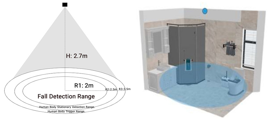 包括跌倒偵測和睡眠監測。它能夠使用點雲成像演算法識別人體姿勢,從而可以檢測某人是否躺著並精確監測生命徵象。