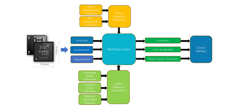 IMU Motion Engine 軟體內建完整的數據融合演算法,包括姿態解算、干擾判斷及在線校準,讓使用者無需繁複的程式設計即可輕鬆獲取 3D 姿態資訊。