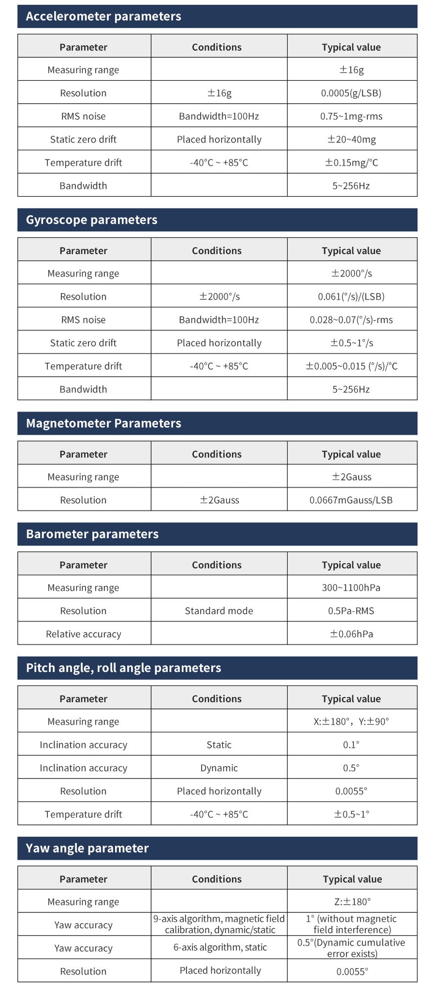1.內建三軸陀螺儀、三軸加速度計、三軸磁力計和氣壓計。