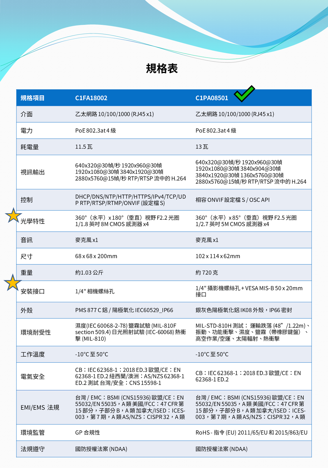 ● 搭載SoC相機,支援多個即時影像輸出,符合ONVIF標準