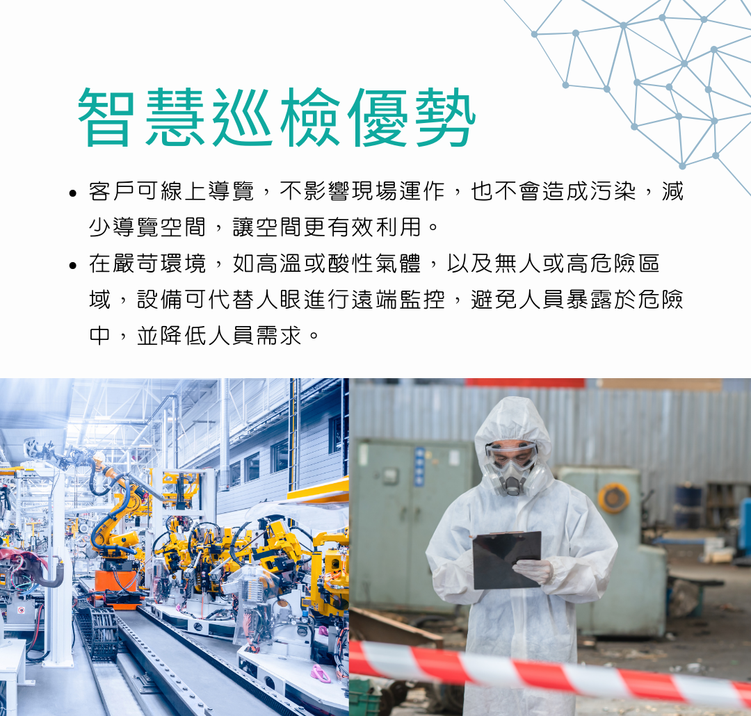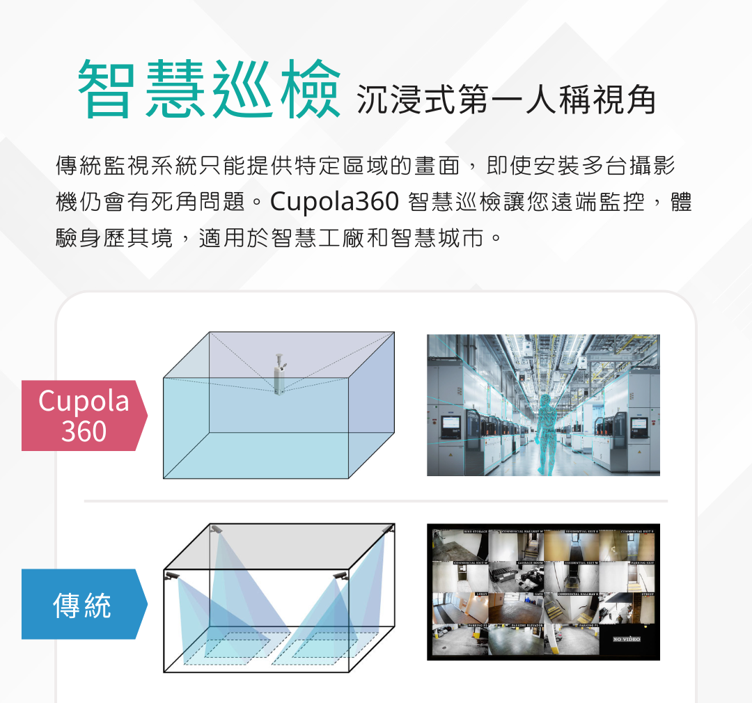 ● 智慧巡檢功能,提供沉浸式第一人稱視角