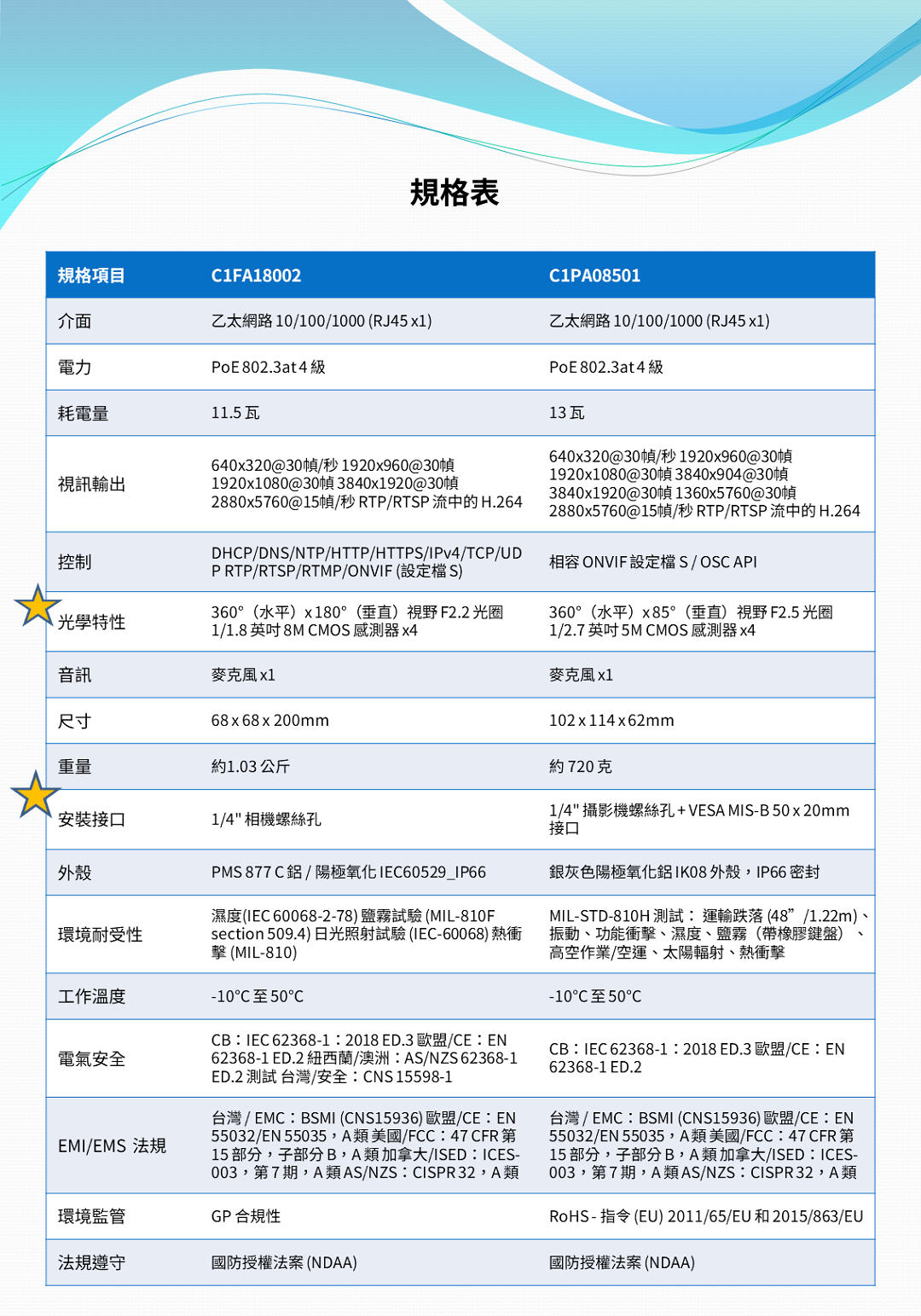 ● 搭載SoC相機,支援多個即時影像輸出,符合ONVIF標準