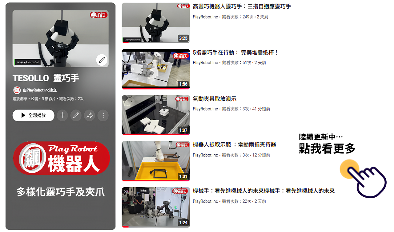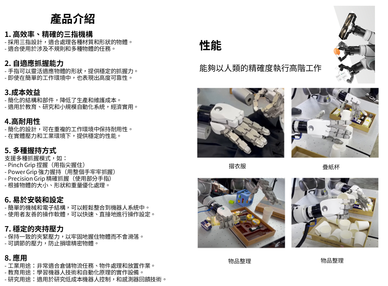 這個三指模型,非常適合以單一爪手處理各種材質和形狀的物體。