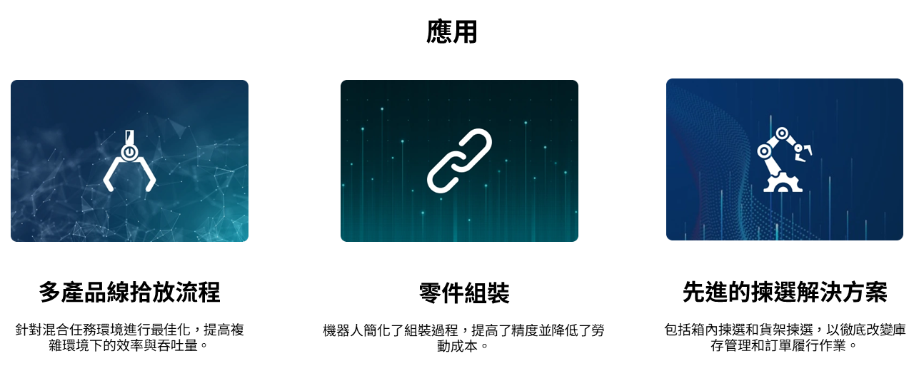 它有多方面的用途,可廣泛應用於以智慧工廠、物流自動化和服務業為主的製造業。