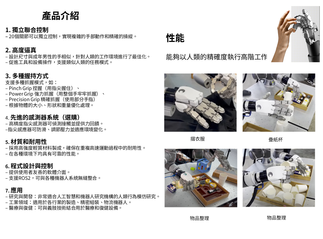 DG-5F 是一種機械手,大小與成年男性的手相似,具有 20 個獨立驅動的關節,可實現高級功能。