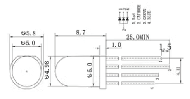 【產品文件】R :波長630-640nm 亮度1000-1200MCD 電壓1.8-2.0G :波長515-525nm 亮度3000-5000MCD 電壓3.2-3.4B:波長465-475nm 亮度2000-3000MCD 電壓3.2-3.4