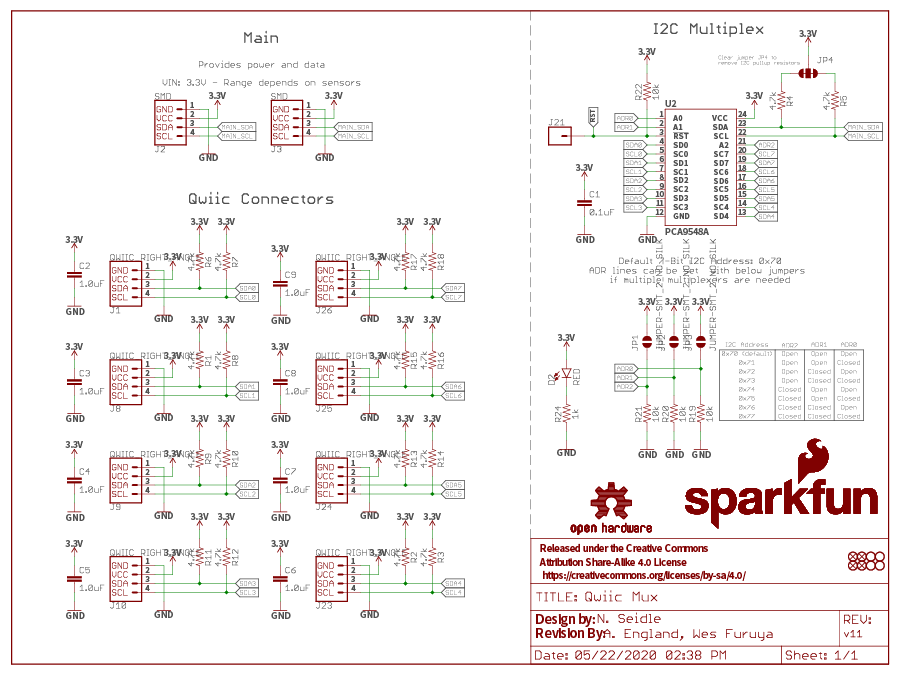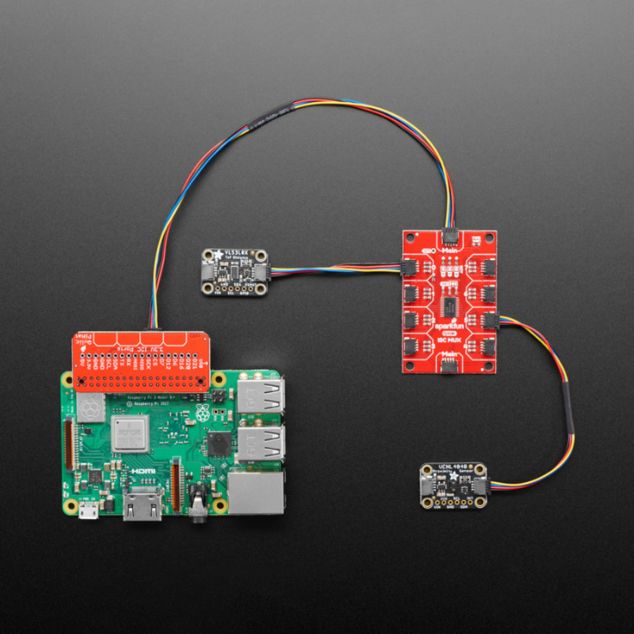 您是否有太多具有相同I2C位址的感測器?將它們放在Qwiic Mux Breakout上,讓它們在同一條總線上工作!Qwiic Mux Breakout支援與多個I2C設備進行通訊,這些設備具有相同的位址,因此可以輕鬆進行介面連接。Qwiic Mux本身也具有八個可配置位址,從而在一個連接上最多支援64個I2C總線。