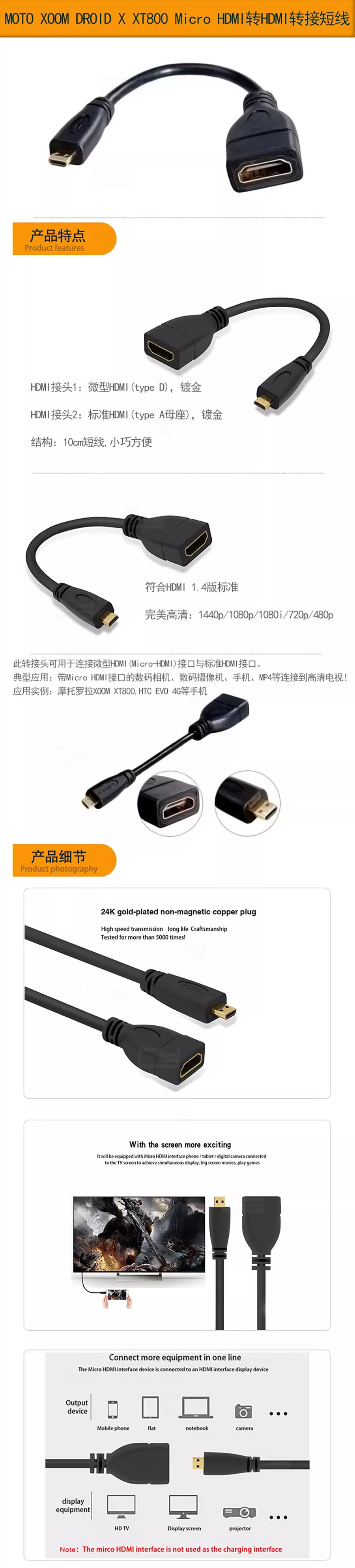 ● 典型應用:具有Micro HDMI介面的數位相機、數位攝影機、手機、MP4等連接到高清電視!