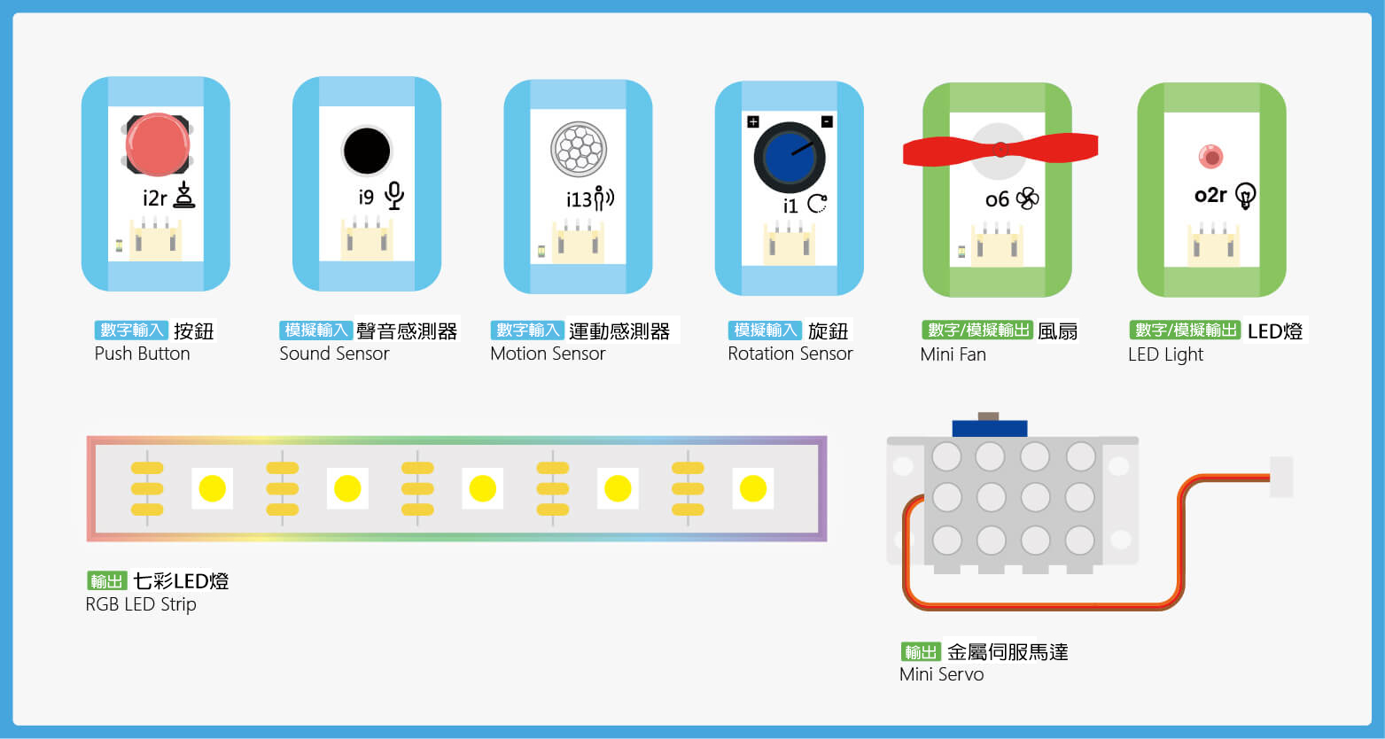 造物粒子系列一共包含超過50款電子模組,功能豐富,即插即玩,並且能通過多種方式固定到創意作品上,讓初學者可以更專注於功能與程式設計。