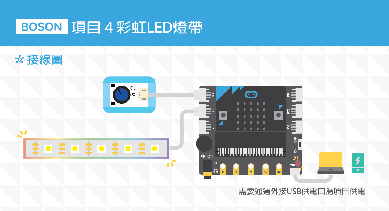 Micro:bit 通過Boson擴展板與這些電子模組連接,擴展板最多能連接6個造物粒子元件,同時支援外部供電。