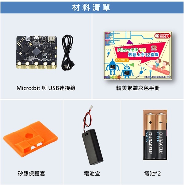 micro:bit 是一個高度靈活、可程式設計的嵌入式設備,我們還有有附贈最新精美彩色繁體教學手冊範例程式,