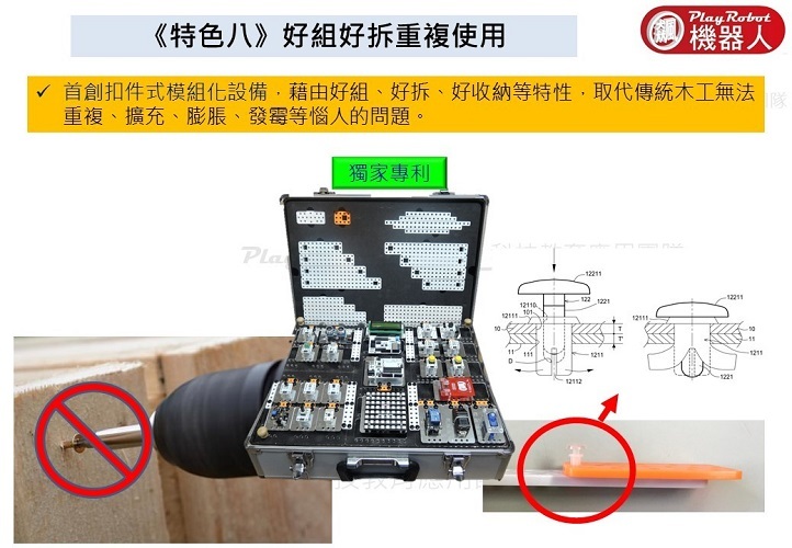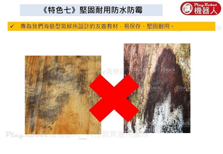專為台灣海島型氣候所設計防潮防霉的友善教材。代傳統木工無法重復、擴充、膨脹、發霉等惱人的問題。