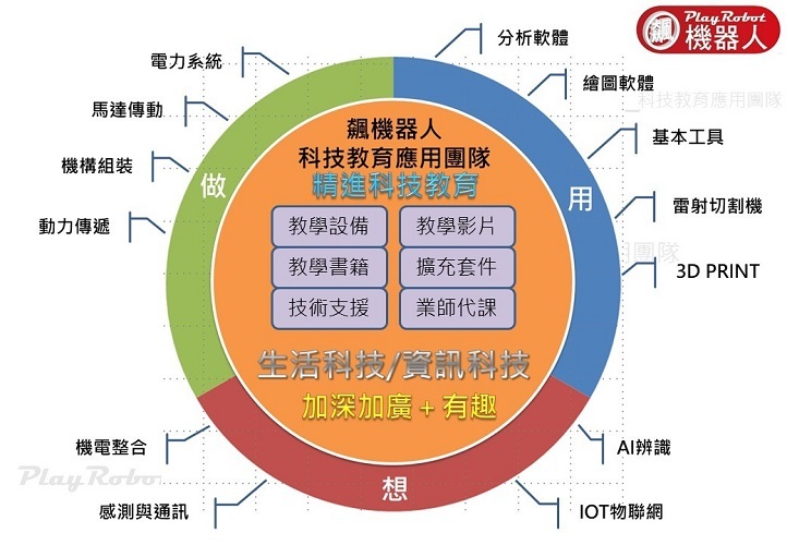 著重在工程導向的設計與製作,強調專題製作活動,提供學生跨學科知識整合的學習。搭配"AI教學應用模組"與"IoT教學應用模組"無痛接軌AIoT應用新路。