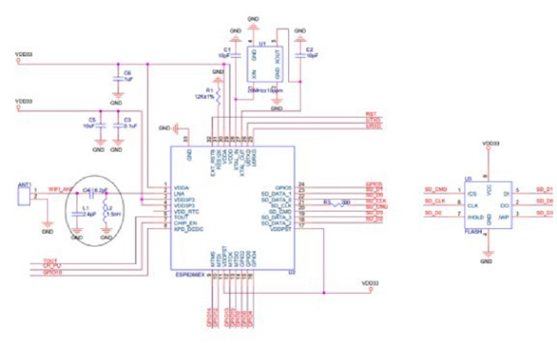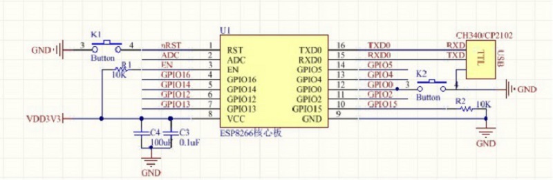 ( 4 )Wi-Fi 模組進入升級模式:GPIO0 處於低電平,然後模組復位上電;Wi-Fi 模組進入正常工作模式:GPIO0 處於高電平,模組復位上電。