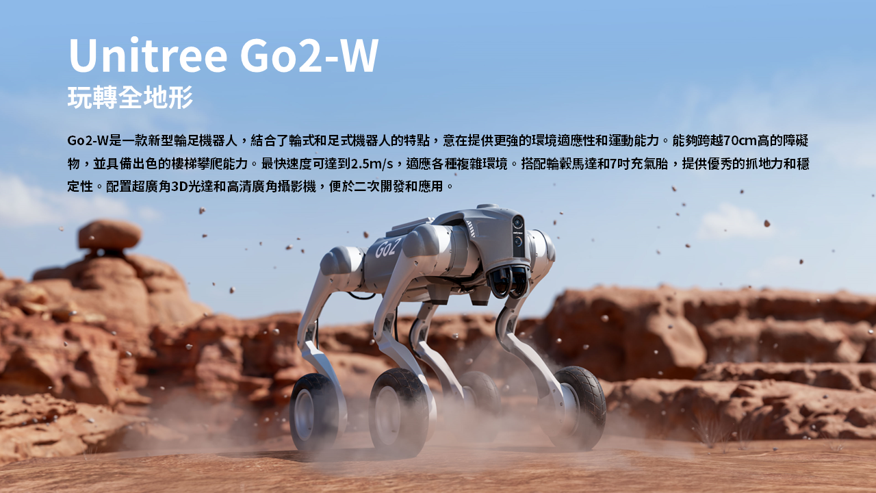 Go2-W是一款新型輪足機器人,結合了輪式和足式機器人的特點,意在提供更強的環境適應性和運動能力。