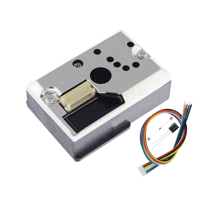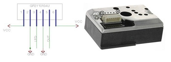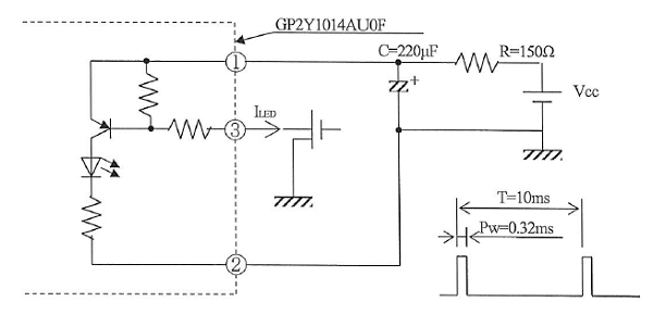 GP2Y1010AU0F 已經於 2014年停產版本,市面上現有流通的庫存品,最新版本是GP2Y1014AU0F,夏普光學灰塵感測器( GP2Y1014AU0F )在檢測非常細的顆粒,如香煙煙霧,是特別有效的,並且是常用的空氣淨化器系統。該裝置中,一個紅外發光二極體和光電電晶體,對角佈置成允許其檢測到在空氣中的灰塵反射光。該傳感器具有極低的電流消耗(最大20mA,11毫安培典型的),可以搭載高達7VDC的感測器。輸出的是一個類比電壓正比於所測得的粉塵濃度,敏感性為0.5V/0.1mg/m3。